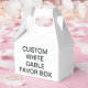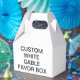Custom printed personalized GABLE FAVOR BOXES (2.5" long x 4" wide x 5" high) Blank Template. Design, create, make your own. Your photo, image, text, logo, graphics in full colour print on the entire outside of the high quality card stock favour box - boxes shipped flat. Five box styles. Best for wedding favours, a birthday, corporate event, Christmas party and more.