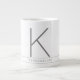 Great big huge giant oversized mug with personalized white and grey monogram initial printed on ceramic is chic and stylish for the minimalist who loves a little flair, but not too much - perfect for a minimal city loft kitchen, and professional-looking for the office. Add a name or personal mantra or inspiration word in the stripe, and add your monogram initial in the modern and clean font. Change the background colour to your favourite sport, school, or team colour by clicking 'customize further'.