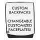 Custom printed personalized ADULT SIZE BOLDFACE INTERCHANGEABLE FACE BACKPACK Blank Template - 17" high x 13" wide x 6" deep. Design, create, make your own. Sublimation print offers vivid, vibrant photo, image, text. Change the customized front flap faceplate in seconds. Swap your design without changing your backpack. Quality, weatherproof, durable, rugged polyester canvas exterior, comfortable wide padded shoulder straps, big main compartment, large zip front pocket, built-in laptop sleeve (fits most laptops up to 17"), side pockets.