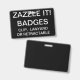 Custom printed personalized 3.38" x 2.13" BADGE Blank Template (with BLACK Background - change to any colour). Design, create, make your own. Your photo, image, text, logo, graphics in full colour edge-to-edge print on the front and the back - horizontal or vertical designs. Made of PVC plastic, durable, won't fade or tear. Available with Lanyard, Metal Clip, Retractable Clip, or Badge Only.