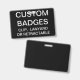 Custom printed personalized 3.38" x 2.13" BADGE Blank Template (with BLACK Background - change to any colour). Design, create, make your own. Your photo, image, text, logo, graphics in full colour edge-to-edge print on the front and the back - horizontal or vertical designs. Made of PVC plastic, durable, won't fade or tear. Available with Lanyard, Metal Clip, Retractable Clip, or Badge Only.