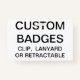 Custom printed personalized 3.38" x 2.13" BADGE Blank Template. Design, create, make your own. Your photo, image, text, logo, graphics in full colour edge-to-edge print on the front and the back - horizontal or vertical designs. Made of PVC plastic, durable, won't fade or tear. Available with Lanyard, Metal Clip, Retractable Clip, or Badge Only.