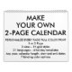 Custom printed personalized LARGE TWO-PAGE CALENDAR with WHITE BINDING Blank Template - 11" x 14.25". Design, create, make your own. SINGLE OR 2 PAGE CALENDARS made of sturdy high quality paper, PERSONALIZE EVERY PAGE IN VIVID FULL COLOR PRINT, 2 sizes (single page) and 3 sizes (two page), 16 grid styles, 21 languages, 4 holiday templates. Any year & calendar length, any start and end dates, and 7 binding colour options. Best for the office and for home, for school, for a kid's bedrooms, and for Christmas gifts.