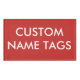 Custom printed personalized LARGE 3.5" x 2" RECTANGLE / RECTANGULAR NAME TAG with EXAMPLE OF RED BACKGROUND PRINT Blank Template. Design, create, make your own. Your photo, image, text, logo in vibrant edge-to-edge full colour AcryliPrint®HD print. Quality magnetic back fitting that won't leave a tear in clothes like a pin tag might. Made of ultra-durable, scratch-proof acrylic, UV resistant and waterproof. Available in Oval, and Small or Large Rectangle shapes.