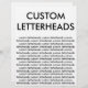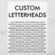 Custom printed personalized BASIC LETTERHEADS Blank Template 11" long x 8.5" wide (standard US letter size). Design, create, make your own. Your photo, image, text in high quality full colour full-bleed edge-to-edge print on the front of the letterhead, for either vertical or horizontal designing. Compatible with inkjet and laser printers. Choose from five different paper types: Basic, Felt, Recycled, Speckled, Linen.