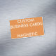 Custom printed personalized 25 HIGH GLOSS MAGNETIC BUSINESS CARDS with EXAMPLE OF ORANGE BACKGROUND PRINT (change to any colour or clear) Blank Template - 2" x 3.5", 14 pt. thick (standard business card size). Design, create, make your own. Your photo, image, text in vibrant edge-to-edge full colour print. Professional high-gloss finish. Sold in sets of 25 cards.