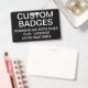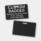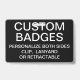 Custom printed personalized 3.38" x 2.13" METAL CLIP BADGE Blank Template. BLACK Background, change to any colour on both sides. Design, create, make your own. Your photo, image, text, logo, graphics in full colour edge-to-edge print on the front and the back - horizontal or vertical designs. Made of PVC plastic, durable, won't fade or tear. Available with Lanyard, Metal Clip, Retractable Clip, or Badge Only.