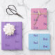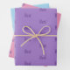 This is a set of three custom name wrapping paper sheets. There are three pastel colour wrapping paper sheets with the name Best on them in purple text. You can change the name by clicking the Personalize button. There is a lavender, pink and blue wrapping paper sheet in the set with the name Best on the sheets in purple text. There is a grid guideline on the back of each sheet to make folding easier.