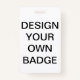 Custom printed personalized 2.13" x 3.38" PORTRAIT BADGE Blank Template. Design, create, make your own. Your photo, image, text, logo, graphics in full colour edge-to-edge print on the front and the back, horizontal or vertical. Made of PVC plastic, durable, won't fade or tear. Retractable, Metal Clip, Lanyard Necklace, or Just Badge. Best for office and business identity use, expos, exhibitions, conferences and corporate events.