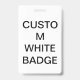 Custom printed personalized 2.13" x 3.38" PORTRAIT BADGE Blank Template. Design, create, make your own. Your photo, image, text, logo, graphics in full colour edge-to-edge print on the front and the back, horizontal or vertical. Made of PVC plastic, durable, won't fade or tear. Retractable, Metal Clip, Lanyard Necklace, or Just Badge. Best for office and business identity use, expos, exhibitions, conferences and corporate events.