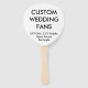 Custom printed personalized 5.75" PADDLE WHITE WEDDING FANS (sets of 10) Blank Template. Design, create, make your own. Your wedding photo, image, message, text, bride and groom names, logo, graphics, in full colour print individually designed on both sides of the fan. 5.75" diameter. Available in white and ecru cardstock (customize to any colour). Simple assembly required - wood handles and 4 glue dots per fan included (available pre-assembled for an upcharge). Available Round, Heart shaped, Paddle or Rectangle.