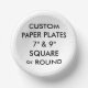 Custom Personalized PAPER BOWLS (8) 7" x 1.5" D. Paper Plate