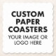 Design, create, make your own paper coasters from a template or blank. The ideal customizable, personalised party essentials for Christmas, wedding, retirement, anniversary, a birthday, baby shower, bridal shower, or other special occasion. Customize with a photo, logo, pattern or design, and add text. Also great for business events and corporate outdoor event such as a festival, marquee event, a fete, annual fair or garden party. Add your logo and branding for a bar, hotel, private members' club, golf club, cigar lounge, restaurant, coffee shop or food truck.