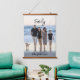 Custom personalized photo, upload large photo, use design tool to adjust, add background colour, move, change text, change text colour.