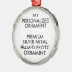Custom Personalized PREMIUM 2.125" ROUND SILVER COLORED METAL PHOTO ORNAMENT. Your full colour printed photos or designs protected with a waterproof and UV-resistant coating.