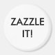 Custom printed personalized LARGE 3" ROUND BUTTON MAGNET Blank Template. Design, create, make your own. Full colour print of photo, image, text on 100% recycled paper and covered with scratch and UV-resistant mylar. Available square or round.