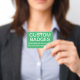 Custom printed personalized 3.38" x 2.13" RETRACTABLE CLIP BADGE Blank Template (with SEA GREN Background - change to any colour, front and back). Design, create, make your own. Your photo, image, text, logo, graphics in full colour edge-to-edge print on the front and the back. Made of PVC plastic, durable, won't fade or tear.
