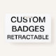 Custom printed personalized 3.38" x 2.13" HORIZONTAL RETRACTABLE CLIP BADGE Blank Template. Design, create, make your own. Your photo, image, text, logo, graphics in full colour edge-to-edge print on the front and the back, horizontal or vertical. Made of PVC plastic, durable, won't fade or tear. Retractable, Metal Clip, Lanyard Necklace, or Just Badge.