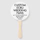 Custom printed personalized 5.75" ROUND ECRU WEDDING FANS (sets of 10) Blank Template. Design, create, make your own. Your wedding photo, image, message, text, bride and groom names, logo, graphics, in full colour print individually designed on both sides of the fan. 5.75" diameter. Available in white and ecru cardstock (customize to any colour). Simple assembly required - wood handles and 4 glue dots per fan included (available pre-assembled for an upcharge). Available Round, Heart shaped, Paddle or Rectangle. Best for weddings, but also great for a Sweet 16, Quinceanera birthday, or any hot, summer or outdoor event, and for corporate and business marketing or promotional use.
