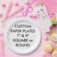 Custom personalized blank template ROUND Paper Plates - Large 9" diameter. Set of 8 disposable party plates.