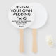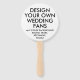 Custom printed personalized 5.75" ROUND WHITE WEDDING FANS (sets of 10) Blank Template. Design, create, make your own. Your wedding photo, image, message, text, bride and groom names, logo, graphics, in full colour print individually designed on both sides of the fan. 5.75" diameter. Available in white and ecru cardstock (customize to any colour). Simple assembly required - wood handles and 4 glue dots per fan included (available pre-assembled for an upcharge). Available Round, Heart shaped, Paddle or Rectangle. Best for weddings, but also great for a Sweet 16, Quinceanera birthday, or any hot, summer or outdoor event, and for corporate and business marketing or promotional use.
