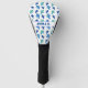 Custom name personalized Saguaro Cactus Pattern Southwestern Colours Desert style golf head cover in shades of turquoise and cobalt blue, green and white. Cute cactus pattern personalized golf accessories for yourself or your favourite golfer.