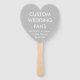 Custom printed personalized 6" SILVER GREY HEART WEDDING FANS (sets of 10) Blank Template. Design, create, make your own. Your wedding photo, image, message, text, bride and groom names, logo, graphics, in full colour print individually designed on both sides of the fan. 5.75" diameter. Available in white and ecru cardstock (customize to any colour). Simple assembly required - wood handles and 4 glue dots per fan included (available pre-assembled for an upcharge). Available Round, Heart shaped, Paddle or Rectangle.