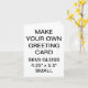 Custom printed personalized SMALL SIZE 4.25" x 5.5" PORTRAIT SEMI-GLOSS (PHOTO) GREETING CARD Blank Template. Design, create, make your own. Your photo, image, text, logo, graphics in full colour CMYK print on each side of the card - inside and out . Printable area on the back of the card is 5" x 7". Standard white envelopes included. SEMI-GLOSS: A thin, smooth, bright white paper with semi-gloss finish designed for photo printing with the optimal colour vibrancy. 40% recycled post-consumer content. Made and printed in the USA. Best for wedding, birthday, anniversary, retirement, get-well-soon, and Christmas cards.