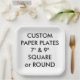 Custom Personalized blank template SQUARE Paper Plates - Large 9" diameter. Set of 8 disposable party plates.
