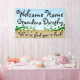 Welcome a long-awaited friend or family member back home with this personalized sign, featuring a blue and tan background, curling vines and a cute fancy font.