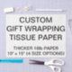 Custom printed personalized THICKER 18lb 10" x 15" (SMALL SIZE) WHITE TISSUE PAPER FOR WRAPPING GIFTS Blank Template. Design, create, make your own. Your photo, image, text, logo, graphics in edge-to-edge full colour print. 10lb paper also available in 7 colours, comparable to standard tissue paper.