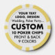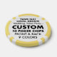 Custom personalized YELLOW Casino / Poker Chips. Set of 10 fun casino chips with an 'easy stack' textured surface. Choose from 9 colours of classic stripe on the poker chip edge: Red, Blue, Green, Black, Yellow, Pink, Orange, Light Blue and Grey, and customize the front, back and edge of your poker chips with a photo, picture, image or design, and add text, vividly printed on high quality composite plastic. Design, create, make your own casino chips from a template or blank. Add your logo and branding for business promotion, and makes a perfect favour gift for a wedding, or token for a birthday, sweet sixteen or bachelorette party, corporate celebration or other special event. A great customizable, personalised gift for Christmas or any occasion. Poker Chip Dimensions: 1.55" diameter x 0.125" thick.