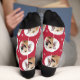 Show your love for your puppy dog or cat with these fun and cozy custom-printed socks! Our premium crew socks feature a pattern of 2 favourite pet photos along with small white paw prints. Create your own by simply adding your picture to the two round placeholder images. Makes a great gift idea and stocking stuffer! Photo tip: crop your photo to a square shape prior to upload so it is centred within the round space. The red background colour can be modified.