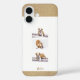 Custom Pet 3 Photo Collage and Name iPhone 16 Case. A personalized photo phone case for a dog owner. Modern design with faux gold glitter. Personalize the phone case with 3 of your favourite pet photos and a name in trendy script. A perfect personalized gift for a dog owner and an animal lover.