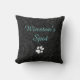 Custom Pet Name Black Floral Teal Script Throw Pillow