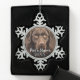 Custom Pet Photo Keepsake Holiday Ornaments - Personalize this cute snowflake ornament with your pet photo, name and date. The photo in this snowflake ornament is a two year old female chocolate lab dog.