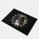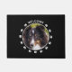 Destei's personalizable pet photo template design featuring some dog paw prints on the edges and a personalizable text area on the top that now reads: "Welcome". The photo is placed in the middle in a round shape together with a white border. The background colour is black and the dog paw prints and text colour is white. You can, however, change the background colour, the paw prints colour and the colour of the text to any other colour, if you wish.