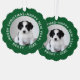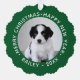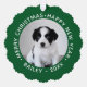 Create your own cute custom ornament featuring your pet photo and text on both sides. Easily add your dog/cat/furbaby photo, name, year, and message (Merry Christmas, Happy New Year, Happy Holidays...) in the sidebar. The text will appear in curved white text on a green border around your photo. Makes a fun stocking stuffer or gift tag for family pet lovers and a wonderful keepsake for you.