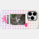 Treasure your cherished pet memories and add a touch of adorable charm to your everyday life with this captivating custom phone case featuring a personalized pet portrait framed in a retro instant photo style, adorned with delicate pink ribbons and hearts. This heartwarming design exudes a sense of nostalgia, love for pets, and a touch of feminine flair, making it a perfect accessory for any pet owner who cherishes the special bond they share with their furry companion. Customize with your pet's name and photo.