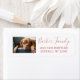 Create your own cute, trendy rose gold photo return address labels- White background. On the left is your own custom pet photo with a paw print in the corner that resembles rose gold foil texture. Currently has an adorable photo of a Mastiff dog breed relaxing on a chair wearing eyeglasses, which you can keep if you wish. To the left is monogrammed family name in elegant, handwriting script. Address below in matching pink, rose gold colour. Note: All images are printed. Not actual foil. Ready to customize however you like- add monogram initial, date, any custom text you prefer. Fun return address labels for dog lovers, veterinarians, pet owners, and pet or dog-related occupations.