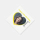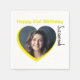 Make any special occasion fun with a heart shaped photo and message on a napkin. Replace the placeholder photograph with your photo. A square photo with subject centred works best. Personalize the template fields, remove text or use the edit design tool to select a font style, size, and colour you prefer. The design can service for graduation, birthday or bridal shower just to name a few special occasions.