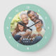 Create a special one of a kind round or square wall clock personalized with your photo and family name monogram. The design features simple modern mint and white colors, or use the design tools to choose any fonts and colors to match your own home decor style. A custom clock is a unique Christmas gift idea for grandparents, new parents or a fun housewarming gift for newlyweds decorating their first home together.