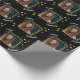 Personalized elegant art deco style wrapping paper with custom photo, stylish squares and custom text on black background