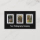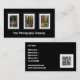 Three picture frames hanging on a plain wall. Use the nature images or change for your own artwork or photography. Custom Business Cards, perfect for artist, photographers and more. Add your own text and QR Code (or delete if not needed). Customise for more options (fonts colours, positions, extra text or to change the background wall colour)