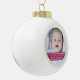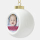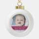 Baby's first christmas holiday decoration with customizable text and a place to add your own special family photo in stylish burgundy red and white. The perfect personalized gift this holiday season or a treasured family keepsake.