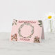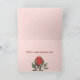 Cute forest animals with colourful floral decoration on their heads and a photo of the celebrant on a wreath of leaves. The background is pink with dots. On the inside are a birthday wish and a rose with leaves