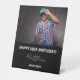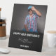 A welcome sign for a 60th birthday party. Personalize and add a photo, a name and age. A classic black background, white text.