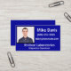 Classic Employee Photo ID business card in traditional design. Royal Blue background. All elements are changable or removable. Elements include: employee photo, employee name, company name, employee department, phone and email numbers. Matching badge also available.