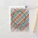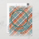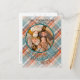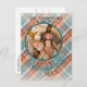 Unique, classic, cute and decorative Holiday season greeting card. With fun Happy Thanksgiving wish on a cozy warm colourful teal blue and orange red coloured plaid tartan pattern. With room to customize or personalize with your own cheerful photo and family name on the front of the card, and a customizable season greeting poem on the backside of the card with room for family member names.