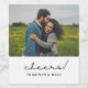 Celebrate your engagement with these elegant and custom photo wine labels. Add your favourite photo of you and your significant other and customize the text to make it unique to your engagement party. The minimalist script font saying "cheers" adds the perfect touch of sophistication.